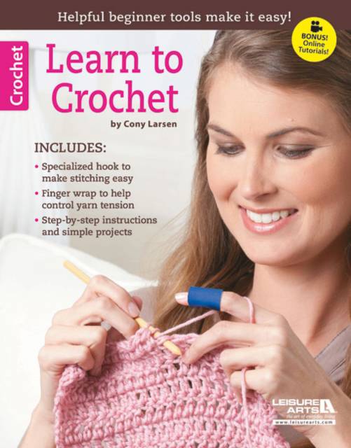 Learn to Crochet by Cony Larsen comes with a special enhanced crochet hook designed to make it easier for beginners to learn to crochet. Step-by-step photo instructions are given for basic crochet techniques, followed by fun beginner-level designs.
