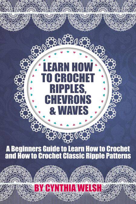 In her latest book, Learn How to Crochet Ripples, Chevrons, and Waves; A Beginners Guide to Learn How to Crochet and How to Crochet Classic Ripple Patterns, Cynthia Welsh shares her expertise and experience to teach you the basics of crochet and get you started crocheting the popular chevron and ripple patterns. This book is geared for beginners, but more advanced crochet artists will also find it a valuable reference for a refresher of basic skills as well as chevron and ripple basics and variations. In this book Cynthia teaches you the following basic stitches and techniques: