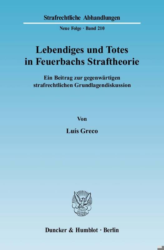 Luís Greco wirft in der vorliegenden Publikation die Frage auf, ob die heutige strafrechtstheoretische Diskussion von Feuerbach und seiner psychologischen Zwangstheorie lernen kann. Dem Autor zufolge hat Feuerbach durch seinen Versuch, das Gesetzlichkeitsprinzip als Mittel zur wirksamen Abschreckung zu begründen, einen Kategorienfehler begangen, weil er eine Schranke der Staatsmacht auf eine Zweckmäßigkeitsüberlegung zurückführt. Nach der Klärung des Verhältnisses von Feuerbach zu Kant und nach einer Widerlegung der Annahme, wonach Feuerbach vom psychologischen Modell eines berechnenden Täters ausgegangen sei, wendet sich Greco hauptsächlich der heutigen strafrechtstheoretischen Diskussion zu. Vorgezogen wird eine negativ-generalpräventive Theorie weitgehend nach Feuerbach'schem Vorbild, die aber nicht mehr den Anspruch erhebt, Schranken der Staatsmacht zu begründen. Diese, vor allem das Instrumentalisierungsverbot und das Gesetzlichkeitsprinzip, werden auf eine eigenständige Grundlage gestellt.