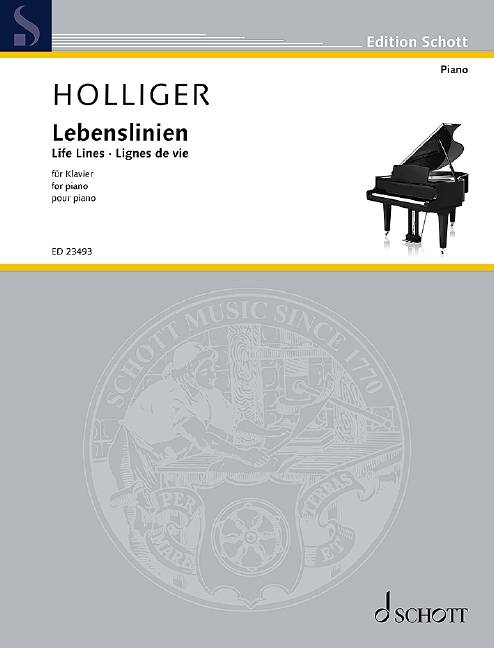 Les dieux du piano de ma jeunesse étaient Dinu Lipatti et Clara Haskil, tous deux mystérieux, magnétisants. Tandis que je ne connaissais Lipatti que par ses disques, j'ai pu entendre Clara Haskil dans un concert en direct deux fois, à Burgdorf et à Lucerne. Je l'ai même suppliée de me donner son autographe, vraiment. Son jeu presque en apesanteur, avec un doigté poétique certain, est resté mon idéal jusqu'à ce jour. Ma pièce pour piano, écrite pour le Concours Clara Haskil, tente de tracer les lignes de sa vie solitaire, touchée par la douleur et marquée par une autocritique et un altruisme rigoureux. "Die Linien des Lebens sind verschieden…" ["Les lignes de la vie sont différentes…" (Scardanelli/Hölderlin)] Lebenslinien (Lignes de vie) est dédiée à György Kurtag à l'occasion de son 95ème anniversaire. Heinz Holliger Instrumentation: piano
