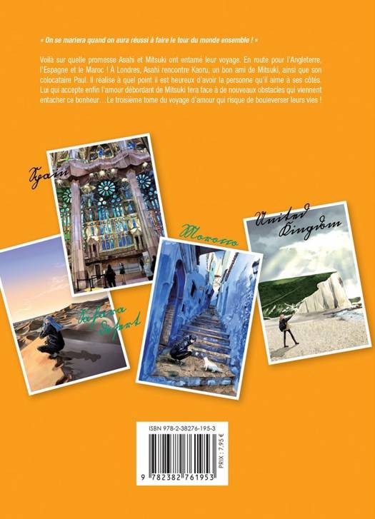 On se mariera quand on aura réussi à faire le tour du monde ensemble ! " Voilà sur quelle promesse Asahi et Mitsuki ont entamé leur voyage. En route pour l'Angleterre, l'Espagne et le Maroc ! À Londres, Asahi rencontre Kaoru, un bon ami de Mitsuki, ainsi que son colocataire Paul. Il réalise à quel point il est heureux d'avoir la personne qu'il aime à ses côtés. Lui qui accepte enfin l'amour débordant de Mitsuki fera face à de nouveaux obstacles qui viennent entacher ce bonheur...Le troisième tome du voyage d'amour qui risque de bouleverser leurs vies !