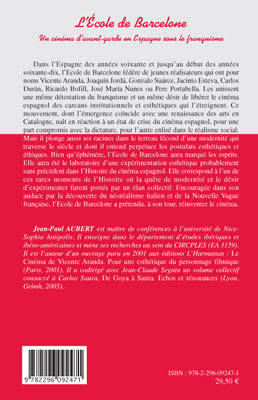 L'Ecole de Barcelone fédère de jeunes réalisateurs qui ont pour noms Vicente Aranda, Joaquin Jorda, Gonzalo Suarez, ou Pere Portabella. Unis par leur haine du franquisme et leur désir de réinventer le cinéma, et sous l'influence du néoréalisme italien et de la Nouvelle Vague Française, ce collectif aura été le laboratoire d'une expérimentation esthétique probablement sans précédent dans l'histoire du cinéma espagnol.