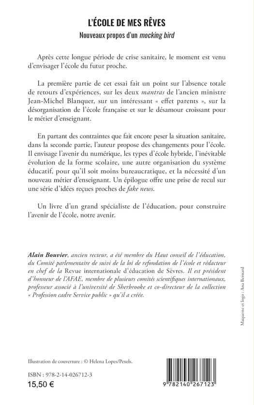 Après cette longue période de crise sanitaire, le moment est venu d’envisager l’école du futur proche. La première partie de cet essai fait un point sur l’absence totale de retours d’expériences, sur les deux mantras de l’ancien ministre Jean-Michel Blanquer, sur un intéressant « effet parents », sur la désorganisation de l’école française et sur le désamour croissant pour le métier d’enseignant. En partant des contraintes que fait encore peser la situation sanitaire, dans la seconde partie, l’auteur propose des changements pour l’école. Il envisage l’avenir du numérique, les types d’école hybride, l’inévitable évolution de la forme scolaire, une autre organisation du système éducatif, pour qu’il soit moins bureaucratique, et la nécessité d’un nouveau métier d’enseignant. Un épilogue offre une prise de recul sur une série d’idées reçues proches de fake news. Un livre d’un grand spécialiste de l’éducation, pour construire l’avenir de l’école, notre avenir.