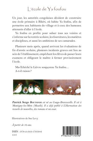 Un jour, les autorités congolaises décident de construire une école primaire à Bikéri, où habite Ya foufou, afin de permettre aux habitants du village et à ceux des hameaux attenants d’aller à l’école. Plusieurs mois après, quand arrivent les évaluations de fin d’année scolaire, plusieurs incidents graves ont lieu au sein de l’établissement, empêchant les élèves de passer leurs examens et obligeant le maître à fermer provisoirement l’école. Ma-Tchéché le Lièvre soupçonne Ya foufou… A-t-il raison ?