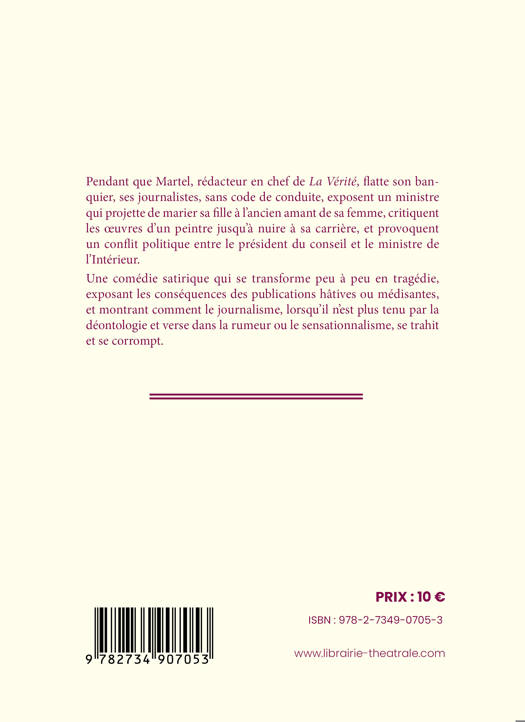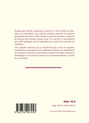 Pendant que Martel, rédacteur en chef de La Vérité, flatte son banquier, ses journalistes, sans code de conduite, exposent un ministre qui projette de marier sa fille à l’ancien amant de sa femme, critiquent les œuvres d’un peintre jusqu’à nuire à sa carrière, et provoquent un conflit politique entre le président du conseil et le ministre de l’Intérieur.
