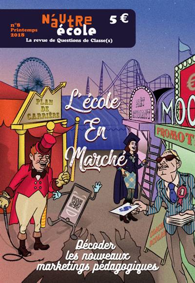« Si l'école faisait son travail, j'aurais du travail »... Si le medef s'est toujours intéressé à l'école, son dernier slogan ne cache plus l'ambition du patronat de concurrencer une institution qu'il n'a eu de cesse de délégitimer. L'école, c'est aujourd'hui un marché à prendre. Il s'agit de mettre « en même temps » l'école « en marche » et « en marché » en convoquant les neurosciences, les pédagogies du libre épanouissement individuel (Montessori ou Alvarez) ou les nouvelles technologies. Afin que chacun fructifie son « capital humain », se met en place une « offre » scolaire concurrentielle et segmentée : école low-cost (Espérance banlieues), établissements « prestigieux » (hors contrat et hors de prix), business parascolaire, etc. Ce numéro invite à décoder, derrière le marketing, cette « nouvelle guerre scolaire ».