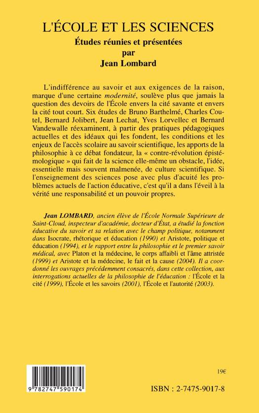 Six études de Bruno Barthelmé, Charles Coutel, Bernard Jolibert, Jean Lechat, Yves Lorvellec et Bernard Vandewalle réexaminent, à partir des pratiques pédagogiques actuelles et des idéaux qui les fondent, les conditions et les enjeux de l'accès scolaire au savoir scientifique, les apports de la philosophie à ce débat fondateur, la "contre-révolution épistémologique" qui fait de la science elle-même un obstacle, l'idée, essentielle mais souvent malmenée, de culture scientifique.