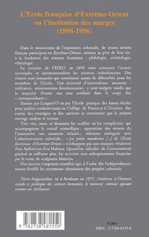 Dans le mouvement de l'expansion coloniale, de jeunes savants français participent en Extrême-Orient, souvent au prix de leur vie, à la fondation des sciences humaines - philologie, archéologie, ethnologie. La création de l'EFEO en 1898 vient consacrer l'action accomplie et institutionnaliser les sciences indochinoises. Des chaires sont instaurées qui constituent autant de débouchés pour les membres de l'École.