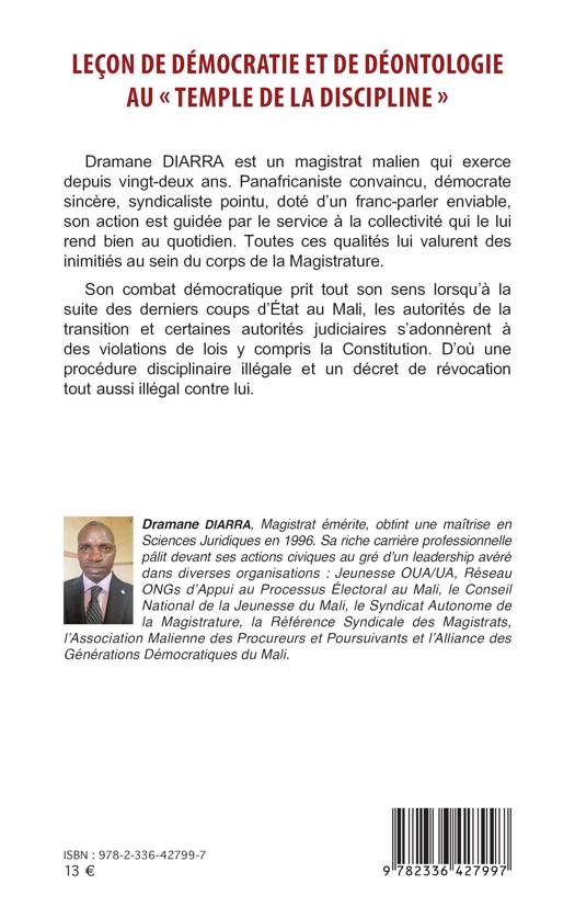Dramane DIARRA est un magistrat malien qui exerce depuis vingt-deux ans. Panafricaniste convaincu, démocrate sincère, syndicaliste pointu, doté d'un franc-parler enviable, son action est guidée par le service à la collectivité qui le lui rend bien au quotidien. Toutes ces qualités lui valurent des inimitiés au sein du corps de la Magistrature. Son combat démocratique prit tout son sens lorsqu'à la suite des derniers coups d'État au Mali, les autorités de la transition et certaines autorités judiciaires s'adonnèrent à des violations de lois y compris la Constitution. D'où une procédure disciplinaire illégale et un décret de révocation tout aussi illégal contre lui.