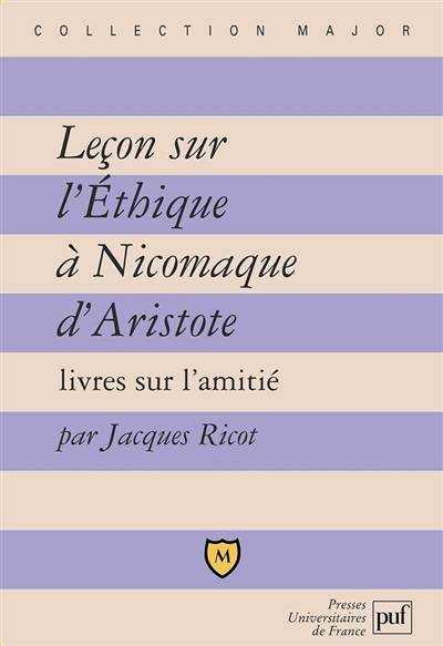 C’est un guide de lecture des livres VIII et IX de l’Ethique à Nicomaque d’Aristote que l’auteur propose, en éclaircissant les points délicats du texte tout en maintenant ouverte sa problématique philosophique. Il s’agit de l’amitié, de ses multiples formes et des divers sentiments qui lui sont associés. Après une introduction permettant de resituer ces deux livres dans l’ouvrage et de présenter les autres, l’auteur propose un commentaire linéaire du texte en s’appuyant sur la traduction de Jean Tricot pour les éditions Vrin et en mentionnant assez précisément et systématiquement les termes clés utilisés en transcription dans l’alphabet latin. Enfin, plusieurs textes en annexe permettent de prolonger la réflexion à partir d’extraits d’ouvrages sur Aristote devenus des classiques ou dans la continuité de sa pensée.