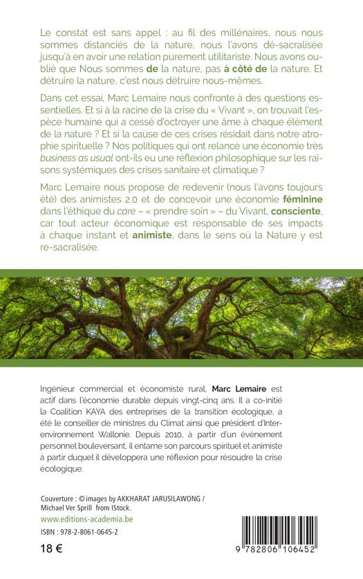 Les politiques qui décident des Plans de relance ont-ils une réflexion philosophique sur les raisons profondes des crises sanitaire et climatique ? Et si à la racine, on trouvait l’espèce humaine qui a cessé d’octroyer une âme à chaque élément de la nature ? Nous sommes de la nature, pas à côté d’elle. Et si la cause de ces crises résidait dans notre atrophie spirituelle ? L’auteur nous propose de redevenir des animistes 2.0 et de concevoir une économie féminine, consciente et animiste.