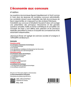 Les questions économiques figurent régulièrement, à l’écrit comme à l’oral, dans les épreuves de nombreux concours administratifs. Les candidats doivent savoir interpréter des faits économiques de façon argumentée, en s’appuyant sur des analyses théoriques. Candidats aux concours et étudiants trouveront dans cet ouvrage une présentation des principaux mécanismes et des grandes questions actuelles, traités en fiches synthétiques et complètes. Les concepts de base y sont définis avec précision et les analyses explicitées, permettant à chacun d’acquérir les connaissances et les savoir-faire indispensables.