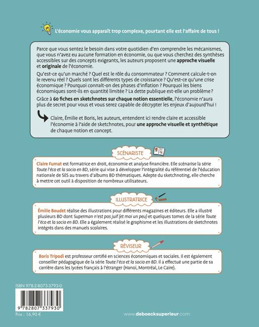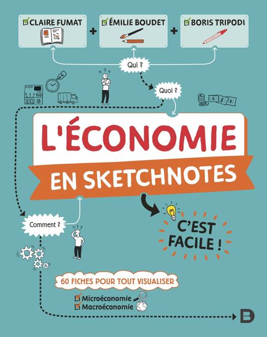 Claire, Émilie et Boris, les auteurs, entendent ici rendre claire et accessible l’économie à l’aide de sketchnotes, pour nous permettre une approche visuelleet synthétique de chaque notion et concept.