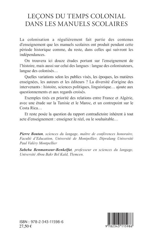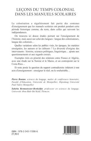 La colonisation a régulièrement fait partie des contenus d'enseignement pendant cette période historique, comme après les indépendances. Les douze contributions réunies ici portent sur l'enseignement de l'histoire, mais aussi sur celui des langues : langue des colonisateurs, langue des colonisés... Elles étudient les variations selon les publics visés, les matières enseignées, les auteurs et les éditeurs. Les exemples sont tirés en priorité des relations entre France et Algérie, avec une étude sur la Tunisie et le Maroc.