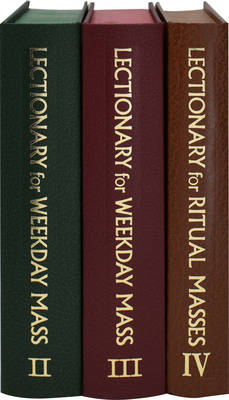 The Lectionary for Weekday Masses Chapel Edition from Catholic Book Publishing contains the complete Weekday Lectionary in liturgical use in the Catholic Church. The three magnificently illustrated volumes of the Weekday Lectionary include the Weekdays for Years I and II, Proper and Common of Saints, and Ritual and Votive Masses. Large, bold, easy-to-read 11-pt. type; a user-friendly layout that eliminates unnecessary page-turning; and over 20 beautiful liturgical drawings providing a pictorial introduction to each main section make this Weekday Lectionary invaluable to Ministers of the Word. Each volume of the Lectionary for Weekday Masses features ribbon markers, enabling the Lector or Gospel Reader to find the options quickly. With their durable, attractive cloth binding, the three volumes of the Chapel Edition of Catholic Book Publishing\'s Lectionary for Weekday Masses will stand up to daily use and last for years.