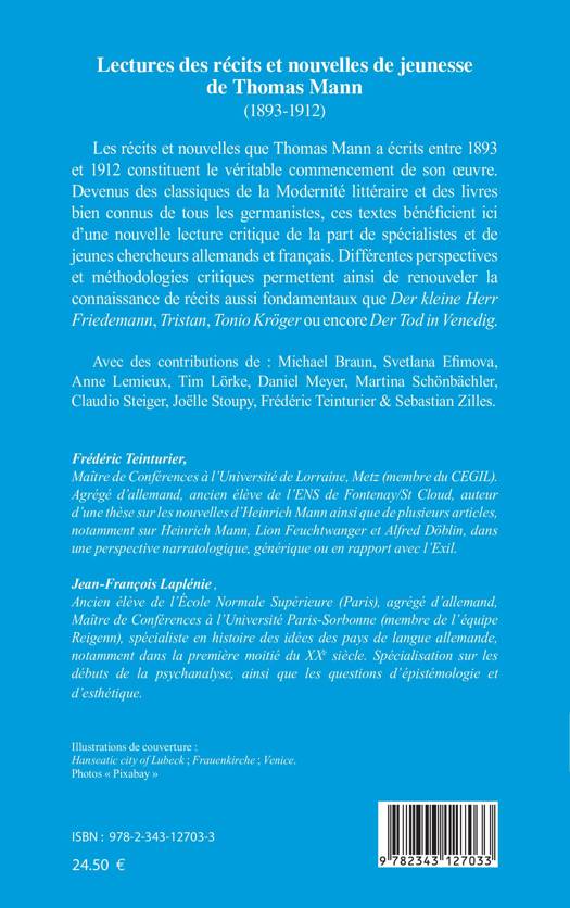 Les récits et nouvelles que Thomas Mann a écrits entre 1893 et 1912 constituent le véritable commencement de son œuvre. Devenus des classiques de la Modernité littéraire et des livres bien connus de tous les germanistes, ces textes bénéficient ici d'une nouvelle lecture critique de la part de spécialistes et de jeunes chercheurs allemands et français. Différentes perspectives et méthodologies critiques permettent ainsi de renouveler la connaissance de récits aussi fondamentaux que Der kleine Herr Friedemann, Tristan, Tonio Kröger ou encore Der Tod in Venedig.