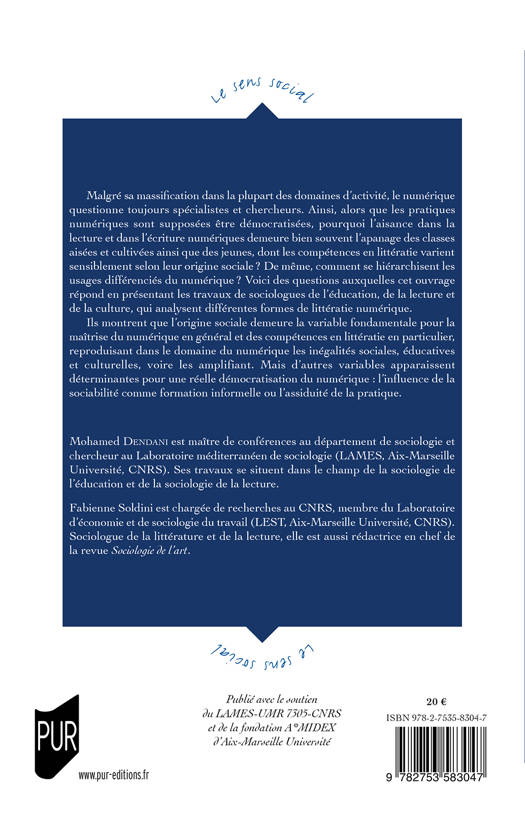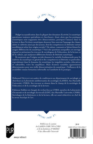Malgré sa massification dans la plupart des domaines d'activité, le numérique questionne toujours spécialistes et chercheurs. Ainsi, alors que les pratiques numériques sont supposées être démocratisées, pourquoi l'aisance dans la lecture et dans l'écriture numériques demeure bien souvent l'apanage des classes aisées et cultivées ainsi que des jeunes, dont les compétences en littératie varient sensiblement selon leur origine sociale ? De même, comment se hiérarchisent les usages différenciés du numérique ? Voici des questions auxquelles cet ouvrage répond en présentant les travaux de sociologues de l'éducation, de la lecture et de la culture, qui analysent différentes formes de littératie numérique.