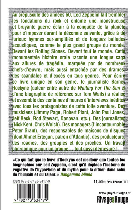 Au crépuscule des années 60, quatre anglais font trembler les fondations du rock et entament une monstrueuse et bruyante guerre éclair à la conquête de la planète. Durant une bonne partie de la décennie suivante, Led Zeppelin va s'imposer - grâce à de furieux hymnes sur-amplifiés et de longues ballades acoustiques - comme le plus grand groupe du monde. Devant les Rolling Stones. Devant tout le monde. Cette monumentale histoire orale raconte une longue saga aux allures de tragédie, marquée par de nombreux chefs d'oeuvres, mais aussi entachée par des drames, des scandales et des excès en tous genres.