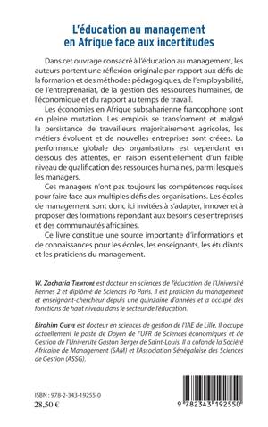 Les économies en Afrique subsaharienne francophone sont en pleine mutation. Les métiers évoluent et de nouvelles entreprises sont créées mais les managers n'ont pas toujours les compétences requises pour faire face aux multiples défis des organisations. Les auteurs de ce livre portent une réflexion originale par rapport aux défis de la formation et des méthodes pédagogiques, de l'employabilité, de l'entreprenariat, de la gestion des ressources humaines, de l'économique et du rapport au temps de travail.