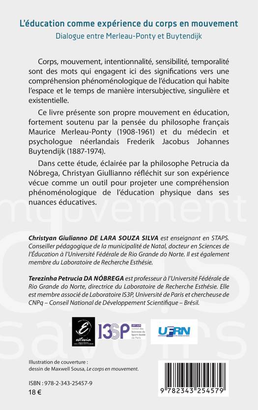 Corps, mouvement, intentionnalité, sensibilité, temporalité sont des mots qui engagent ici des significations vers une compréhension phénoménologique de l’éducation qui habite l’espace et le temps de manière intersubjective, singulière et existentielle. Ce livre présente son propre mouvement en éducation, fortement soutenu par la pensée du philosophe français Maurice Merleau-Ponty (1908-1961) et du médecin et psychologue néerlandais Frederik Jacobus Johannes Buytendijk (1887-1974). Dans cette étude, éclairée par la philosophe Petrucia da Nóbrega, Christyan Giullianno réfléchit sur son expérience vécue comme un outil pour projeter une compréhension phénoménologique de l’éducation physique dans ses nuances éducatives.