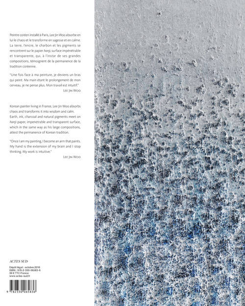 Lee Jin Woo est un peintre coréen, installé à Paris depuis une dizaine d'années. Sa peinture est une longue traversée de la mémoire. Il absorbe en lui le chaos et le transpose en sagesse et calme. La terre, l'encre, le charbon et les pigments se rencontrent sur un support de papier de riz ou de bambou parfois brûlé et déchiré.