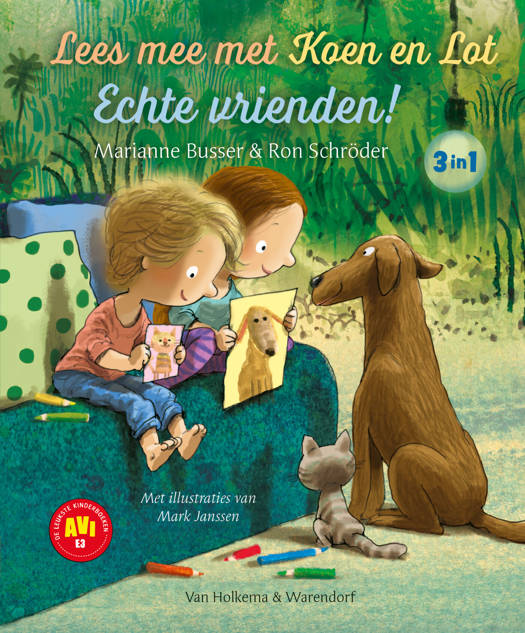 Deze tweede bundel van de AVI-boeken over Koen en Lot, geschreven door het succesvolle schrijversduo Marianne Busser en Ron Schröder, bevat drie avonturen. In ‘Een spook in de klas’ is de juf van Koen en Lot boos. Er gebeuren gekke dingen! Is er soms een spook in de klas? In ‘Een schat in het park’ zien Koen en Lot een vreemde man in het park. Hij stopt iets in de grond, maar wat is het? Een schat misschien? Het duo gaat op onderzoek uit. En in ‘Koen wint een prijs’ mag Koen met de hele klas naar de speeltuin. Ze gaan met de bus, maar Lot kan niet mee. Ze is van de trap gevallen. Dan heeft Koen een plan en de juf helpt mee. Hoe zal dit aflopen? Lees mee met Koen en Lot - Echte vrienden! bevat vrolijke illustraties van Mark Janssen.