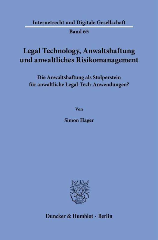 English summary: Legal Technology, Attorney Liability and Attorney Risk Management. Lawyer's Liability as a Barrier for Legal Tech Applications? This work comes to the conclusion that legal technology will not replace lawyers. However, the use of legal technology by lawyers leads to new, neglected questions of legal professional liability. This work is dedicated to these and shows to what extent the risks of professional liability threatening the existence of a lawyer can be avoided through legal liability management. The focus is on the drafting of lawyers' contracts, lawyers' company law and lawyers' professional liability insurance. German description: Mit den neuen technischen Moglichkeiten, die nicht zuletzt durch den Einsatz Kunstlicher Intelligenz eroffnet werden, steht die anwaltliche Mandatsbearbeitung vor einem grundlegenden Wandel. Diese Arbeit widmet sich der Frage nach der Zukunft der anwaltlichen Rechtsdienstleistung und untersucht, welche haftungsrechtlichen Gefahren Rechtsanwalte bei der Nutzung digitaler Hilfsmittel beachten sollten. Dabei werden sowohl kunftige technische Entwicklungen als auch der Status quo in den Blick genommen. Durch diese Arbeit werden mogliche Wege aufgezeigt, mit denen Rechtsanwalte existenzgefahrdende Haftungsrisiken vermeiden konnen, ohne auf den Einsatz von Legal Technology verzichten zu mussen. So werden die teils versteckten Risiken bei der Nutzung von Legal Technology herausgearbeitet, aber auch dargelegt, dass bei einem umsichtigen anwaltlichen Risikomanagement die anwaltliche Berufshaftung keine unuberwindbare Hurde darstellt.