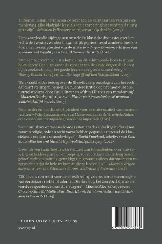 'Een kraakhelder betoog over de filosofische grondslagen van het recht, dat durft stelling in nemen. De nuchtere kritiek op het modieuze cultuurrelativisme door Paul Cliteur en Afshin Ellian is een verademing' - Maarten Boudry, schrijver van Illusies voor gevorderden: of waarom waarheid altijd beter is (2015)