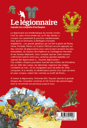 Le légionnaire romain à la conquête de l’Empire Le légionnaire est emblématique du monde romain. Il est au cœur d’une armée qui, au fil des siècles, a conquis non seulement le pourtour méditerranéen mais aussi la Germanie, la Bretagne (l’actuelle Angleterre)… Les grands généraux qui ont fait la gloire de Rome, César, Pompée, Marius ou Scipion l’Africain se sont appuyés sur des cohortes de légionnaires pour vaincre leurs ennemis les plus redoutables, du Gaulois Vercingétorix au Carthaginois Hannibal et ses fameux éléphants. Sans compter que les chefs romains s’affrontant parfois entre eux, certaines grandes batailles ont opposé des légionnaires à… d’autres légionnaires ! Ces soldats-citoyens pouvaient marcher des milliers de kilomètres par an, bâtir des camps, les démonter, organiser des sièges, combattre en mer… Ils se chargeaient aussi de piller les villes conquises. À la retraite, ils bénéficiaient parfois d’un lopin de terre en pays conquis, créant des colonies au profit de Rome… À travers le légionnaire, l’historien Éric Teyssier aborde la grande fresque des conquêtes romaines et fait revivre des personnages dont la renommée est parvenue jusqu’à nous.