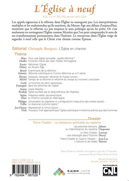 Les appels vigoureux à la réforme dans l'Église ne manquent pas. Les interprétations multiples et les malentendus qu'ils suscitent, du Moyen-Âge aux débats d'aujourd'hui, montrent que la réforme n'a pas toujours le sens politique qu'on lui prête. Or c'est seulement en envisageant l'Église comme Mystère que l'on peut comprendre le sens de ses transformations permanentes dans l'histoire. Le renouveau dans l'Église exige de regarder à neuf celle que le Christ s'est choisie comme Épouse.