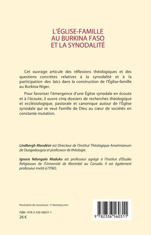 Cet ouvrage articule des réflexions théologiques et des questions concrètes relatives à la synodalité et à la participation des laïcs dans la construction de l'Église-famille au Burkina-Niger. Pour favoriser l'émergence d'une Église synodale en écoute et à l'écoute, il ouvre cinq dossiers de recherches théologique et ecclésiologique, pastorale et canonique autour de l'Église synodale qui se veut Famille de Dieu au coeur de sociétés en constante mutation.