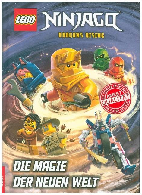 Die Welt von Ninjago steht Kopf Spannendes LesebuchTreue Ninja-Fans erwarten neue aufregende Geschichten aus dem LEGO® NINJAGO® Universum! Denn eine neue Ninja-Generation wächst heran und muss sich beweisen. Für die tapferen Ninja-Helden ist nichts mehr wie es vorher war: Alle bekannten Reiche sind auf mysteriöse Weise mit der Welt von Ninjago verschmolzen. Das bringt einige Herausforderungen mit sich. Neue wie auch alte Helden müssen nun ihren Weg in der neuen Welt finden. So jagt der Entdecker Kevin Kiesel verschollenen Artefakten hinterher, die durch die Verschmelzung der Reiche wieder aufgetaucht sind. Währenddessen arbeiten die Nachwuchs-Ninja Sora und Arin an einem Mech, mit dem Sora ein Rennen gewinnen will. Lloyd und Kai versuchen, die Risse im Boden, die durch das Erdbeben während der Verschmelzung verursacht wurden, zu versiegeln. Kinder ab 6 Jahren können hier ihre Helden bei drei abgeschlossenen Abenteuern begleiten! Dabei werden die von Hand illustrierten bunten Szenen im Buch die Herzen der Ninja-Fans höherschlagen lassen.LEGO, the LEGO logo, the Brick and Knob configurations, the Minifigure and NINJAGO are trademarks of the LEGO Group. ©2023 The LEGO Group.