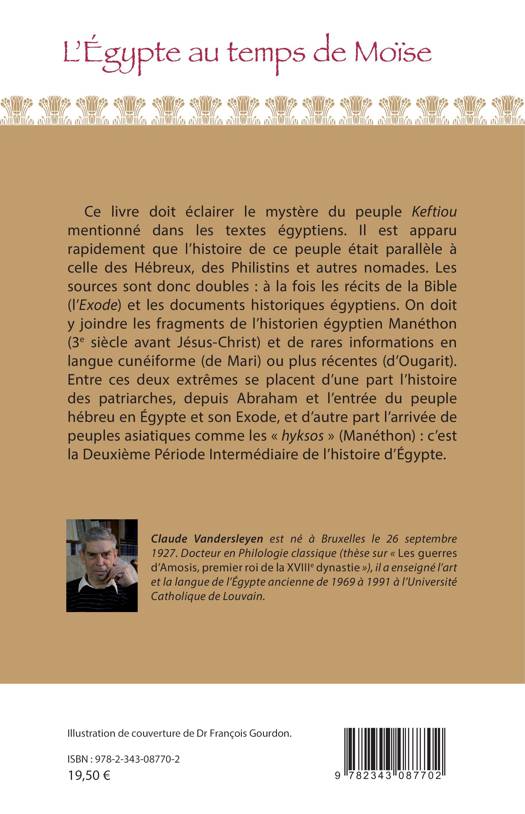 Il s'agit d'éclairer le mystère du peuple Keftiou mentionné dans les textes égyptiens. L'histoire de ce peuple est parallèle à celle des Hébreux, des Philistins et autres nomades. Les sources sont donc doubles : les récits de la Bible (l'Exode) et les documents historiques égyptiens. On doit y joindre des fragments de l'historien égyptien Manéthon et les rares informations en langue cunéiforme (Mari et Ougarit). Entre ces sources se place l'histoire des patriarches depuis Abraham et l'entrée du peuple hébreu en Egypte.