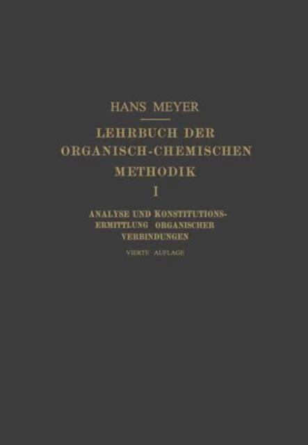 Erster Band: Analyse und Konstitutions-Ermittlung Organischer Verbindungen