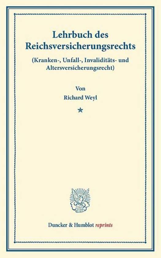 Das Reichsversicherungsrecht "bildet [...] einen Teil der 'socialpolitischen Gesetzgebung' des deutschen Reiches, d.h. derjenigen Gesetzgebung, welche sich das schöne und ideale Ziel steckt, dem socialen Elende der minderbegüterten Volksschichten und dem socialen Übel des Klassengegensatzes abzuhelfen" (S. 2). Diesem Recht ist das Lehrbuch Weyls gewidmet. Es gliedert sich in drei Teile: Im ersten, historischen Teil zeichnet Weyl die Geschichte des materiellen Arbeiterschutzes und des Reichsversicherungsrechts nach. Im zweiten Teil behandelt Weyl die einzelnen Teilgebiete, etwa das Krankenversicherungsrecht oder das Unfallversicherungsrecht. Im abschließenden dritten Teil wird der Bedeutung des Reichsversicherungsrechts nachgegangen.