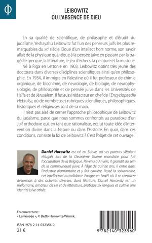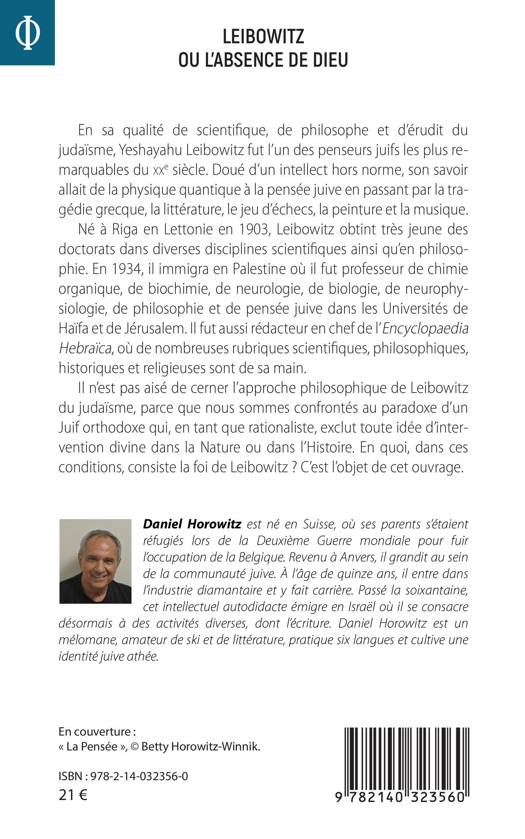 En sa qualité de scientifique, de philosophe et d'érudit du judaïsme, Yeshayahu Leibowitz fut l'un des penseurs juifs les plus remarquables du XXe siècle. Il n'est pas aisé de cerner l'approche philosophique de Leibowitz du judaïsme, parce que nous sommes confrontés au paradoxe d'un Juif orthodoxe qui, en tant que rationaliste, exclut toute idée d'intervention divine dans la Nature ou dans l'Histoire. En quoi, dans ces conditions, consiste la foi de Leibowitz ?