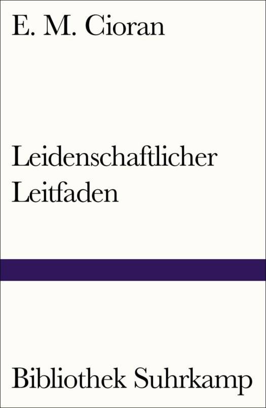 Der Leidenschaftliche Leitfaden, Ciorans letzte rumänische Schrift, 1940 bis 1944 in Paris entstanden, ist ein an bekenntnishafter Kühnheit kaum zu überbietendes Werk, das die jugendliche Schaffensperiode vor dem Hintergrund der Pariser Vereinsamung zusammenfaßt und verschärft. Ein Werk bezwingenden Sprachrausches, das durch den unversöhnlich unzeitgemäßen Ton erschüttert. Der sich aus dem Land seiner Väter gewaltsam Hinaussprengende erkennt, daß der Weg zur Erneuerung über Trümmer und Leichen der eigenen Vergangenheit führt. Nur indem er am Scheideweg mit seinem bisherigen Wüten abrechnet und seinen Überschwang ins Maßlose steigert, vermag er die Schranken der Vereinzelung und die Ausweglosigkeiten des Diesseitigen zu überwinden. Ein Beseligter des Trennungseifers schleudert seine Untergangsblitze in eine betörend erstrahlende Welt des Zwielichts.