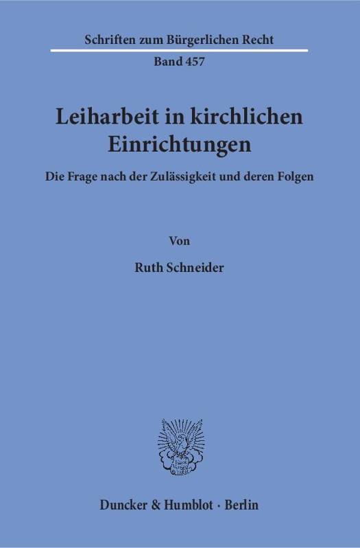 Auch Kirchen und ihre Einrichtungen nutzen gerne das Instrument der Arbeitnehmerüberlassung, allerdings nicht ohne auf Kritik zu stoßen. Problematisch erscheint die Vereinbarkeit mit dem Begriff der Dienstgemeinschaft. Anhand der Untersuchung theologischer Grundlagen, der Auswertung kirchlicher Normierungen sowie der Rechtsprechung werden Rückschlüsse gezogen auf die Zulässigkeit von Arbeitnehmerüberlassung in kirchlichen Einrichtungen. Es werden sieben Kriterien entwickelt, die erforderlich sind für einen Dienst in der Kirche. Im Ergebnis können im Rahmen der internen Arbeitnehmerüberlassung alle Voraussetzungen eingehalten werden, nicht aber bei der externen Arbeitnehmerüberlassung; hier wird der Aspekt der Lohngerechtigkeit nicht ausreichend berücksichtigt. Auf Folgeprobleme der Arbeitnehmerüberlassung, beispielsweise die Frage nach den Mitspracherechten der Mitarbeitervertretung, wird hingewiesen und nach Lösungsmöglichkeiten gesucht.