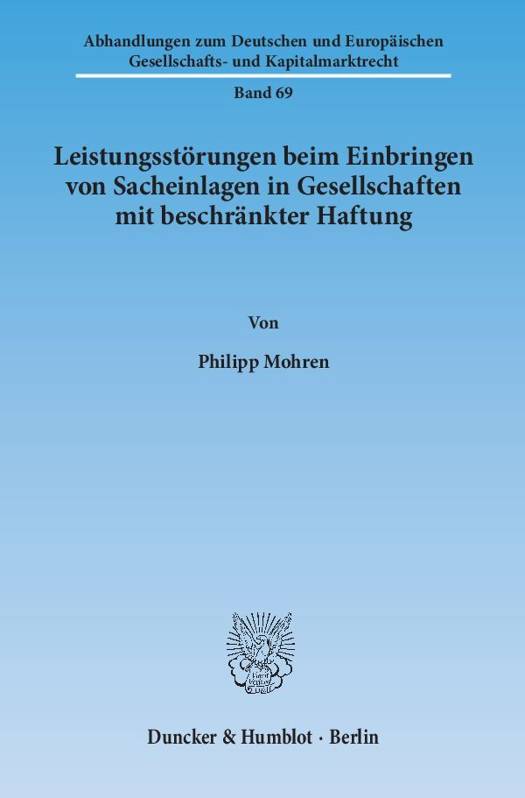Das Auftreten von Leistungsstörungen bei der Leistung von Sacheinlagen ist ein kontrovers diskutiertes Problem des Kapitalgesellschaftsrechts. Neue Aktualität hat das kapitalgesellschaftsrechtlich wie schuldrechtlich geprägte Problemfeld dadurch erfahren, dass in den letzten Jahren beide Regelungsmaterien Gegenstand von Reformen waren. Die Untersuchung benennt zunächst Regelungen und Wertungen des GmbHG, die dabei helfen, ein System zur Bewältigung von Leistungsstörungen bei der Sachkapitalaufbringung zu entwickeln. Im Anschluss werden Tatbestand und Rechtsfolgen der Leistungsstörungen erarbeitet. Dabei erweisen sich zahlreiche Vorschriften des Schuldrechts als anwendbar. Diese entfalten Wechselwirkungen mit gesellschaftsrechtlichen Vorschriften. Der für den Einleger oft als ungünstig eingeordnete Rückgriff auf Kaufrecht kann diesen wegen des Rechts zur zweiten Andienung letztlich sogar begünstigen.