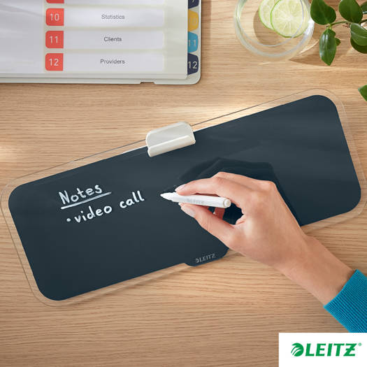 Sentez vous comme à la maison, quelque soit l'endroit où vous travaillez, grâce à la gamme Leitz Cosy. Avec son design minimaliste et ses couleurs attrayantes, vous pouvez ajouter du style à votre espace de travail. Le bloc-notes en verre Cosy Glass est un outil de prise de notes de bureau qui peut être utilisé à volonté, il suffit d'écrire avec un marqueur, d'effacer et de recommencer. Ce bloc-notes en verre premium est le complément idéal pour votre maison ou votre bureau pour vous assurer de rester détendu et productif toute la journée.