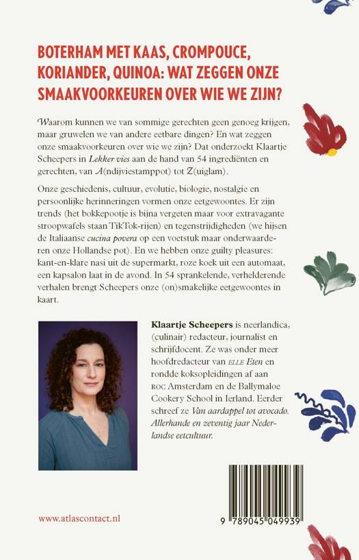Waarom kunnen we van sommige gerechten geen genoeg krijgen, maar gruwelen we van andere eetbare dingen? En wat zeggen onze smaakvoorkeuren over wie we zijn? Dat onderzoekt Klaartje Scheepers in Lekker vies aan de hand van 54 ingrediënten en gerechten, van A(ndijviestamppot) tot Z(uiglam).