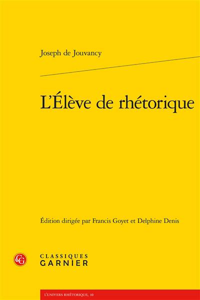 Écrit et publié à Rome en 1710, L'Élève de rhétorique (Candidatus rhetoricae) de Joseph de Jouvancy est le dernier manuel de rhétorique à l'usage des collèges jésuites, et, à ce titre, un précieux témoignage de l'enseignement de cette discipline. La présente édition en offre la première traduction intégrale, avec une abondante annotation. Son ambition est de contribuer à la reconquête d'un ancien savoir-faire, pour mieux analyser les oeuvres du passé : il s'agit de rendre de nouveau opératoires des catégories rhétoriques qui nous sont devenues peu à peu étrangères, mais dont l'apprentissage méthodique a pour longtemps constitué les conditions de possibilité de l'exercice des belles-lettres.