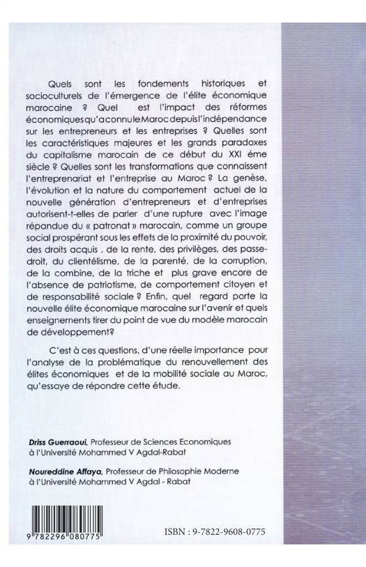 Quels sont les fondements historiques et socioculturels de l'émergence de l'élite économique marocaine ? Quel est l'impact des réformes économiques qu'a connu le Maroc depuis l'indépendance sur les entrepreneurs et les entreprises ? Quelles sont les caractéristiques majeures et les grands paradoxes du capitalisme marocain en ce début de XXIe siècle ?