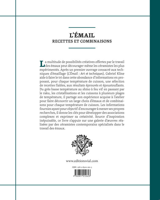 La multitude de possibilités créatives offertes par le travail des émaux peut décourager même les céramistes les plus expérimentés. Après un premier ouvrage consacré aux techniques d’émaillage (L’Émail : Art et techniques), Gabriel Kline aide à faire le tri dans cette abondance d’informations en proposant, pour chaque température de cuisson, une sélection de recettes fiables, aux résultats éprouvés et époustouflants. Du grès basse température au shino à feu vif en passant par le raku, les cristallisations et les cuissons à plusieurs plages de température, il partage son expérience acquise à l’atelier pour faire découvrir un large choix d’émaux et de combinaisons pour chaque température de cuisson. Les informations fournies ayant pour objectif d’encourager à mener ses propres recherches, il donne les clés pour développer des associations complexes et exprimer sa créativité. Source d’inspiration inépuisable, ce livre s’appuie sur une galerie d’œuvres réalisées par des céramistes contemporains spécialisés dans le travail des émaux.