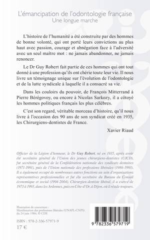 L'histoire de l'humanité a été construite par des hommes de bonne volonté, qui ont porté leurs convictions au plus haut avec passion, courage et abnégation face à l'adversité avec un seul maître mot: ne jamais abandonner, ne jamais renoncer. Le Dr Guy Robert fait partie de ces hommes qui ont tout donné à une profession qu'ils ont chérie toute leur vie. Il nous livre un témoignage unique sur l'évolution de l'odontologie et de la lutte syndicale à laquelle il a consacré sa vie. Dans les couloirs du pouvoir, de François Mitterrand à Pierre Bérégovoy, ou encore à Nicolas Sarkozy, il a côtoyé les hommes politiques français les plus célèbres. C'est son regard, véritable morceau d'histoire, qu'il nous livre à l'occasion des 90 ans de son syndicat créé en 1935, les Chirurgiens-dentistes de France. Xavier Riaud