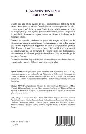 L'école, peut-elle encore devenir ce lieu d'émancipation de l'Homme par le savoir ? Cette question traverse l'actualité éducative contemporaine. En effet, certains pensent qu'à force de vider l'école de ses finalités premières, on ne lui assigne plus que des objectifs purement fonctionnels, comme l'acquisition de portefeuille de compétences pour s'assurer de l'insertion de chacun sur le marché du travail. D'autres, au contraire, continuent de penser que malgré les injonctions de l'économie du marché et des politiques, l'école peut encore rester ce lieu unique, qui, à la fois prépare chacun à apprendre à « sentir et comprendre ce que vaut d'être homme et à quoi cela engage » (Jaurès, 2005, p.100), tout en acquérant les compétences qui lui permettent de s'insérer aussi bien humainement, citoyennement, socialement que professionnellement dans un monde qui le précède et l'excède. Ce sont ces conditions de possibilité pour redonner à l'école cette double fonction, en partant des contextes différents, que cet ouvrage explore.