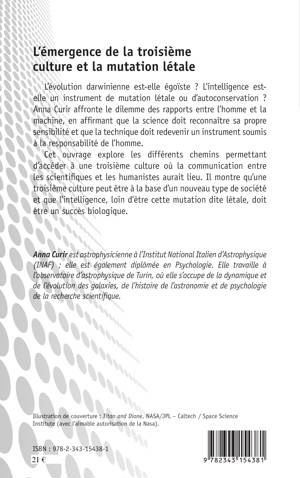 L'évolution darwinienne est-elle égoïste ? L'intelligence est-elle un instrument de mutation létale ou d'autoconservation ? Anna Curir affronte le dilemme des rapports entre l'homme et la machine, en affirmant que la science doit reconnaître sa propre sensibilité et que la technique doit redevenir un instrument soumis à la responsabilité de l'homme. Cet ouvrage explore une troisième culture où la communication entre scientifiques et humanistes aurait lieu. Il montre qu'une troisième culture peut être à la base d'un nouveau type de société et que l'intelligence, loin d'être cette mutation dite létale, doit être un succès biologique.