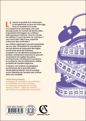 L’heure, la qualité d’un restaurant, la température, le taux de chômage, le QI, la durée d’un entraînement, la réussite d’un lycée, la richesse, une cote de popularité... Il semble impossible d’échapper aux chiffres ! Mais à quoi servent-ils exactement ? D’où viennent-ils ? Et pourquoi met-on le monde en chiffres ? Les chiffres régissent une bonne partie de nos vies : ils servent à coordonner nos actions, à établir des règles de vie commune et à trouver des conventions au sein des collectifs. Ils contribuent aux prises de décision et à l’exercice du pouvoir. Ils participent à nos quêtes de justice et d’harmonie, et à la construction de la confiance. Et ils prétendent aussi refléter la réalité de façon objective. La puissance des chiffres provient-elle de leur capacité à énoncer des certitudes, de notre soumission volontaire à des artifices utiles, de leur aptitude à fabriquer un monde et à nous l’imposer, ou des leviers qu’ils nous offrent pour s’entendre et agir ? À travers une analyse sociologique et historique de la quantification, Olivier Beraud Martin nous montre toute l’étendue de l’empire des chiffres dans nos sociétés.