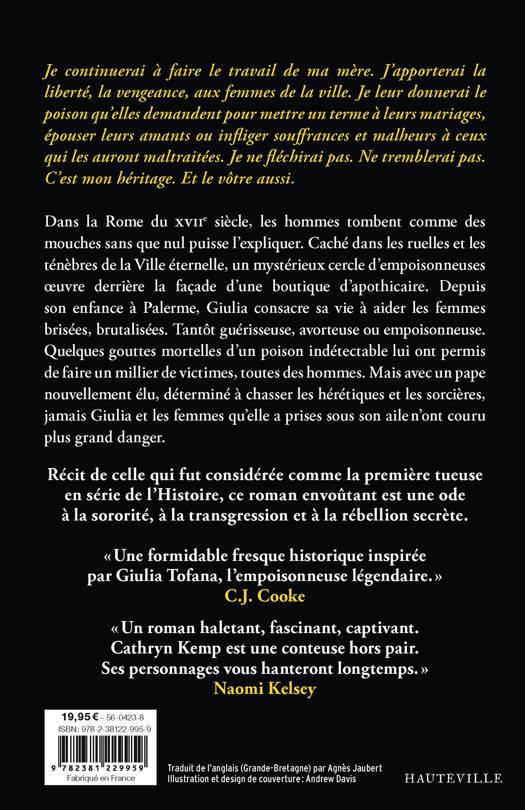 « Une formidable fresque historique inspirée par Giulia Tofana, l'empoisonneuse légendaire. » C.J. Cooke