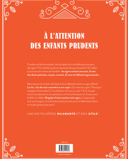 Connaissez-vous l'ogre des bois ? Et l'ogre bleu ? Savez-vous de quoi se nourrit un bébé ogre ? Et surtout : comment se défendre contre un ogre affamé, si on a le malheur d'en croiser un au détour d'une rue ? (Indice : il faut faire appel à la BIAO, la Brigade d'intervention anti-ogres, qui vous apprendra à le repousser... Par exemple en l'appâtant avec des fraises Tagada !) Si vous n'avez pas les réponses à toutes ces questions, cette encyclopédie est faite pour vous. Un livre plein d'humour à mettre entre toutes les mains !